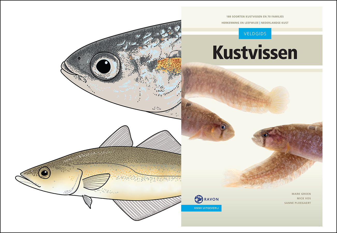 YES! It is there: the “Veldgids Kustvissen”; de ultimate field guide to the fishes of teh Dutch North Sea coast is finally available. This fieldguide is the outcome of a monumental amount of work in a 7-year project and includes over 500 of my illustrations. You can order your copy at foundation RAVON, but please note that the guide is only published in Dutch language.